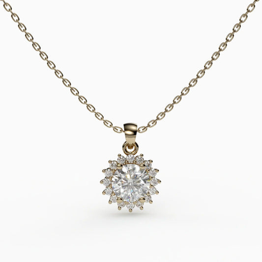 Sale Ends Today!Sunflower of Love - Halo Diamond Solitaire Necklace