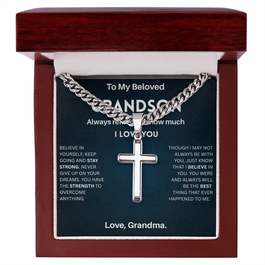 Sale Ends Today!Believe in yourself - Artisan Cross Cuban Chain For Grandson
