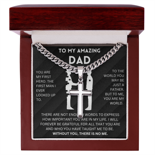 Sale Ends Today!Without you, there is no me - Artisan Cross Cuban Chain For Dad