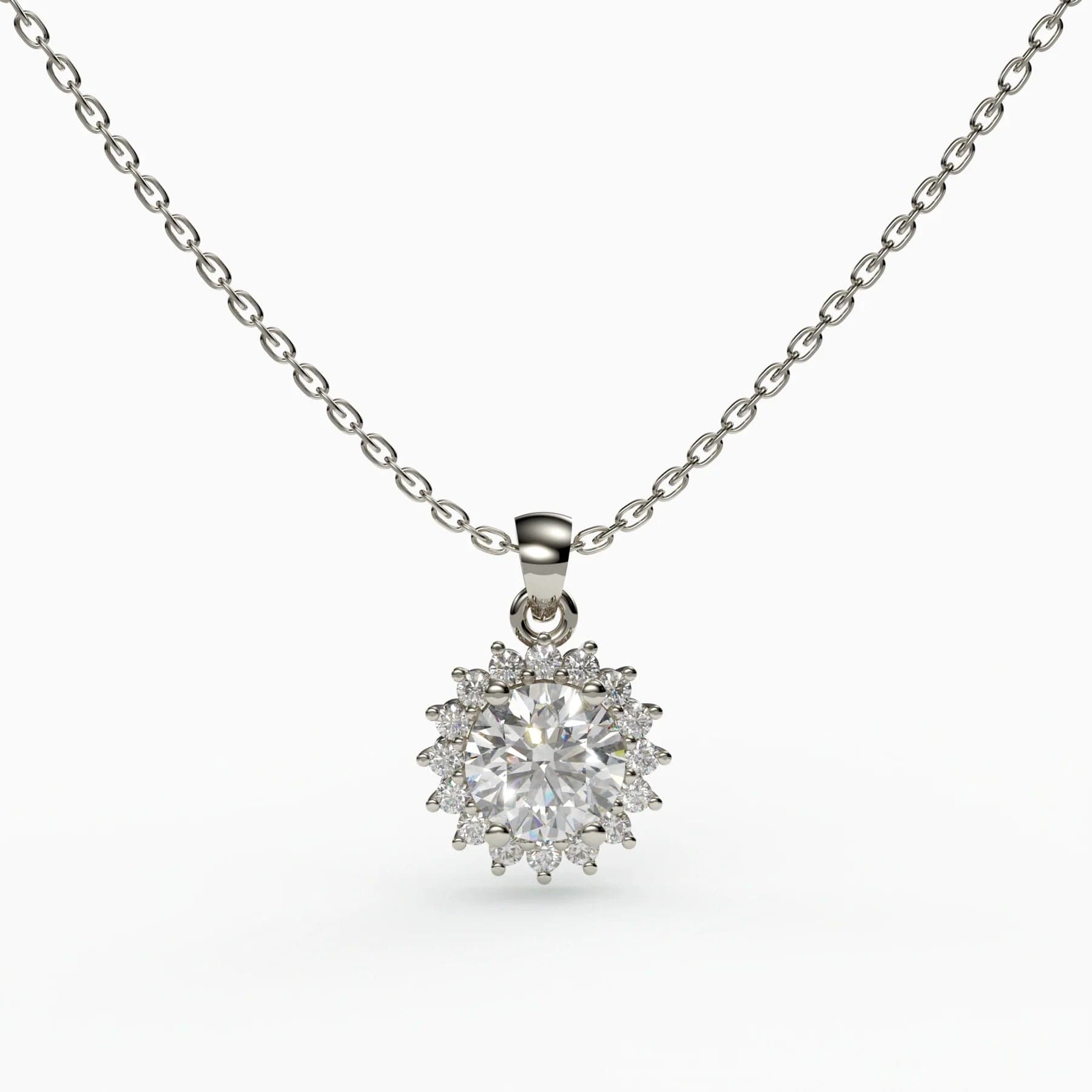 Sunflower of Love - Halo Diamond Solitaire Necklace