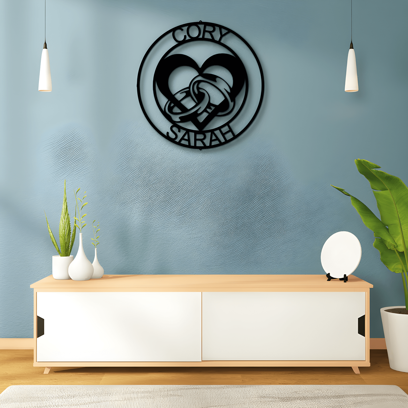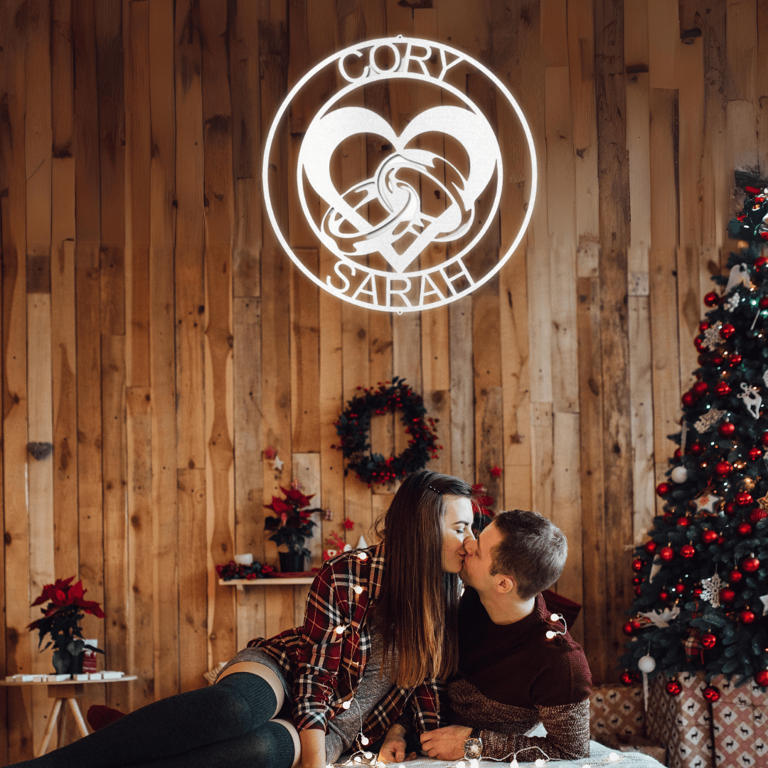 Say "I love you" with this special gift to your soulmate. It's hard to express your love every day through just words but a lovely wall art like this will surely remind you how strong the bond of love you two have is. The personal touch of the names over the heart with the ring design makes it the best gift ever! A perfect choice for Christmas, anniversaries, birthdays, or any special occasion. We are proud to have all of our metal wall art made right here in the USA. You can trust the ultimate quality and quickest shipping time.