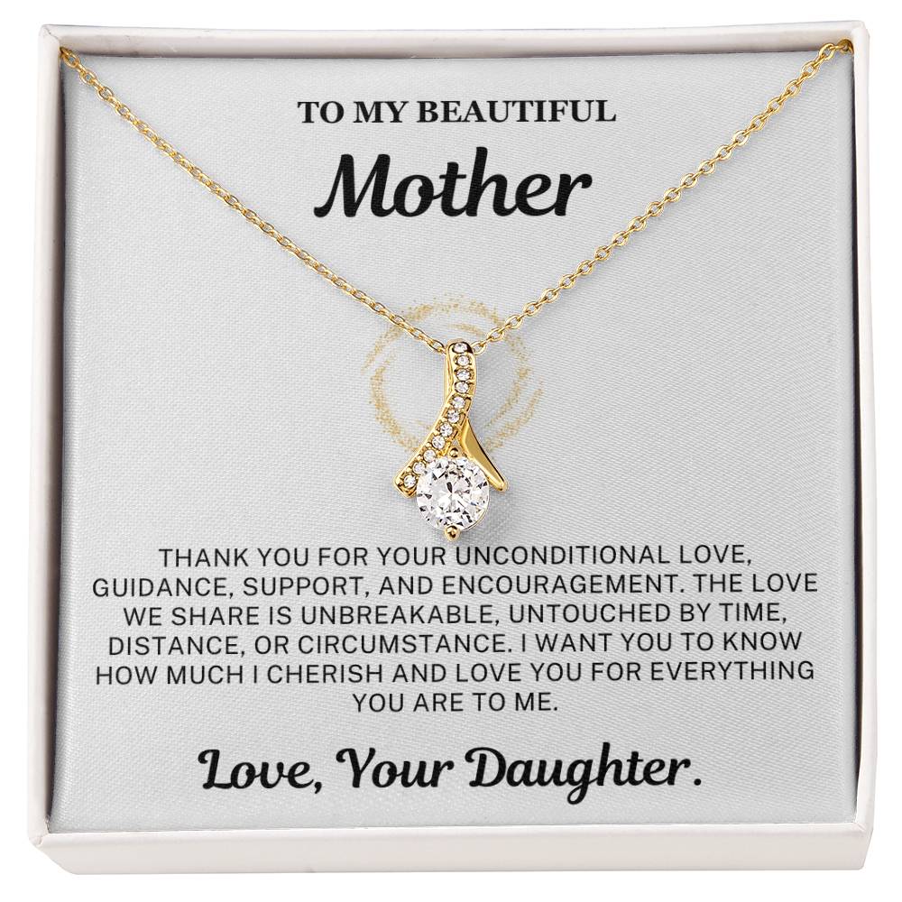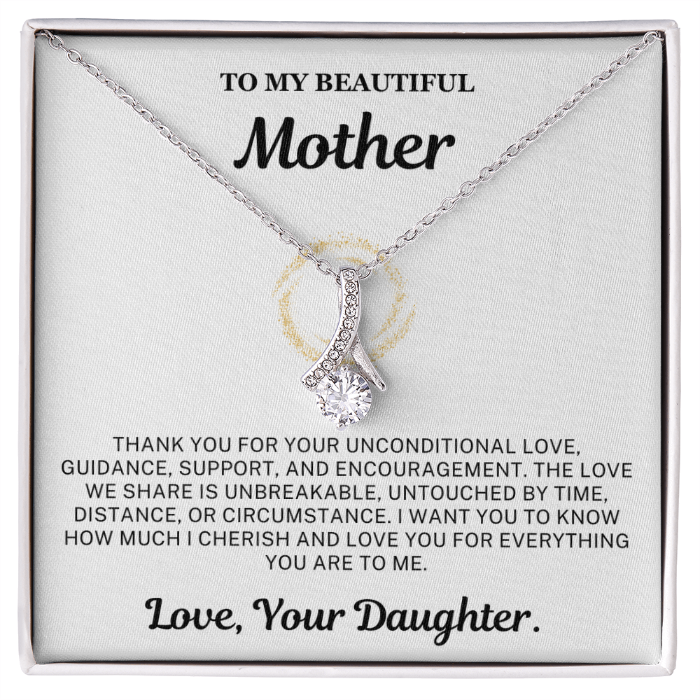 Imagine her reaction when she opens this stunning gift! The Alluring Beauty necklace features a petite ribbon shaped pendant that is sure to dazzle your special someone. Whether it's a birthday or anniversary, make sure to get her a gift she will love for years to come.