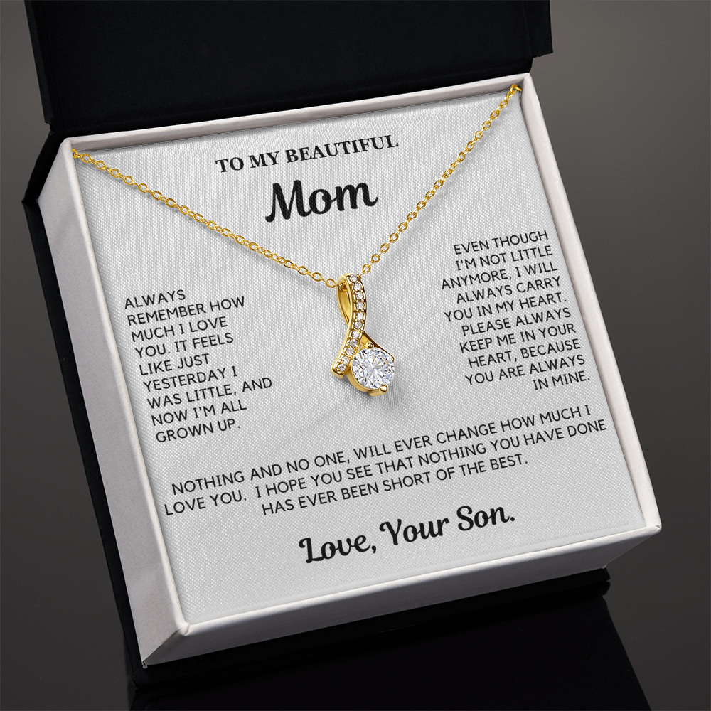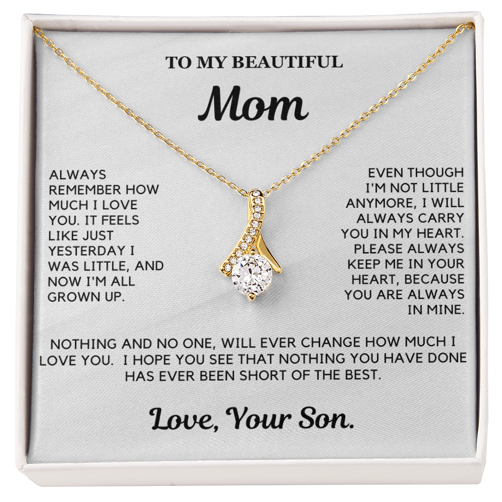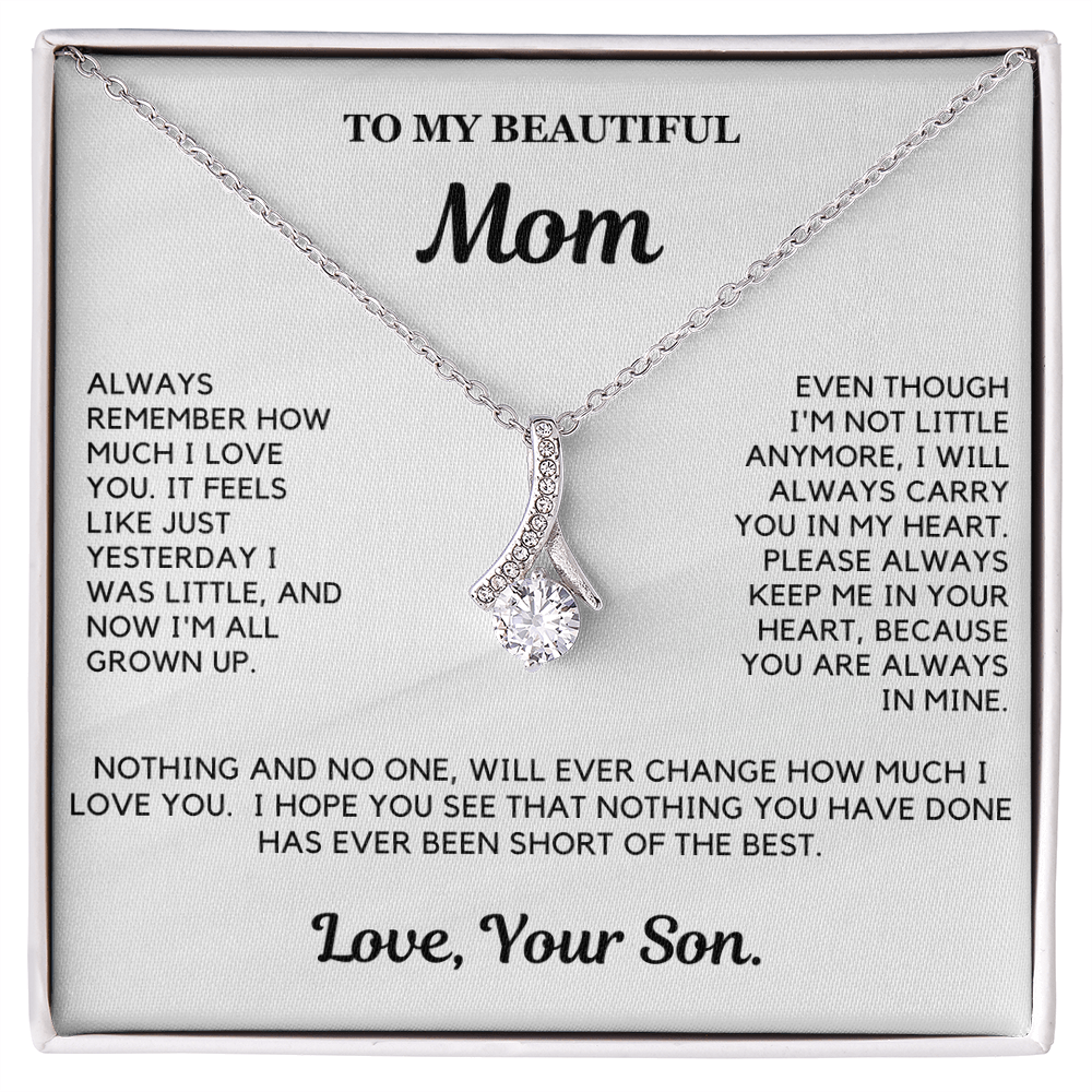 Imagine her reaction when she opens this stunning gift! The Alluring Beauty necklace features a petite ribbon shaped pendant that is sure to dazzle your special someone. Whether it's a birthday or anniversary, make sure to get her a gift she will love for years to come.