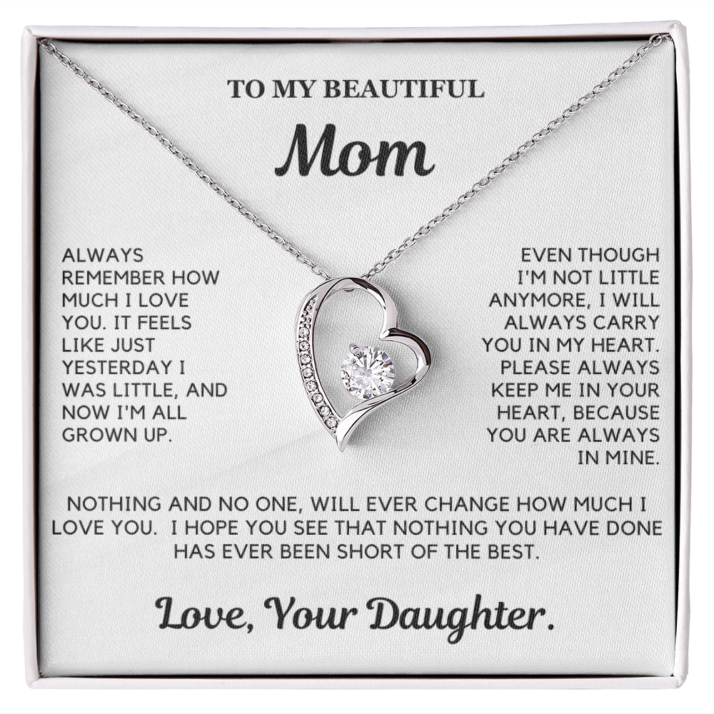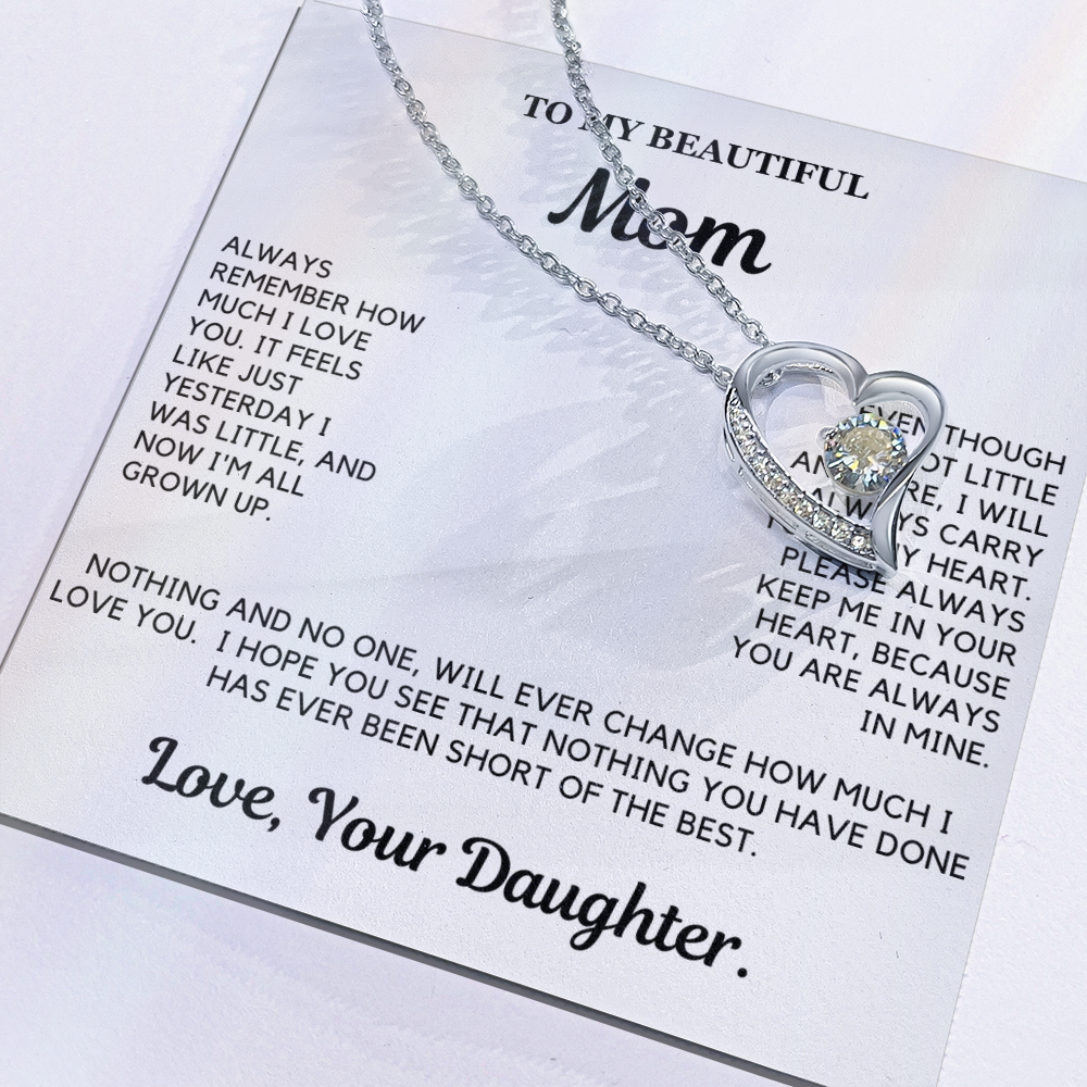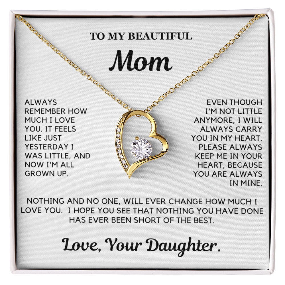 The dazzling Forever Love Necklace is sure to make her heart melt! This necklace features a stunning 6.5mm CZ crystal surrounded by a polished heart pendant embellished with smaller crystals to add extra sparkle and shine. Beautifully crafted with either a white gold or yellow gold finish, be sure to give her a classic gift she can enjoy everyday.
