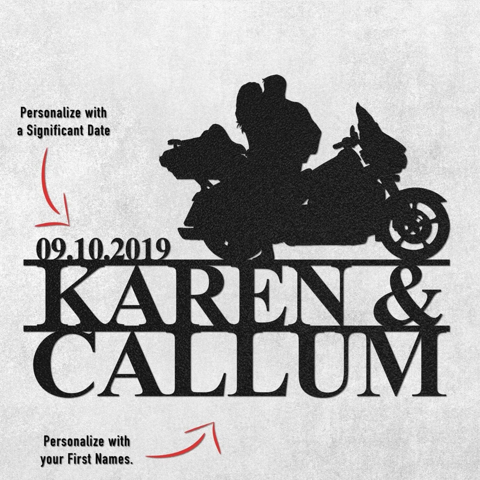 It's more than a sign; it's a symbol of your unbreakable bond and your journey together. Get ready to rev up your love story with this custom metal masterpiece! Customize it as you wish, and let your love for the ride shine on your walls. Order yours today and make your home a tribute to your incredible journey together!