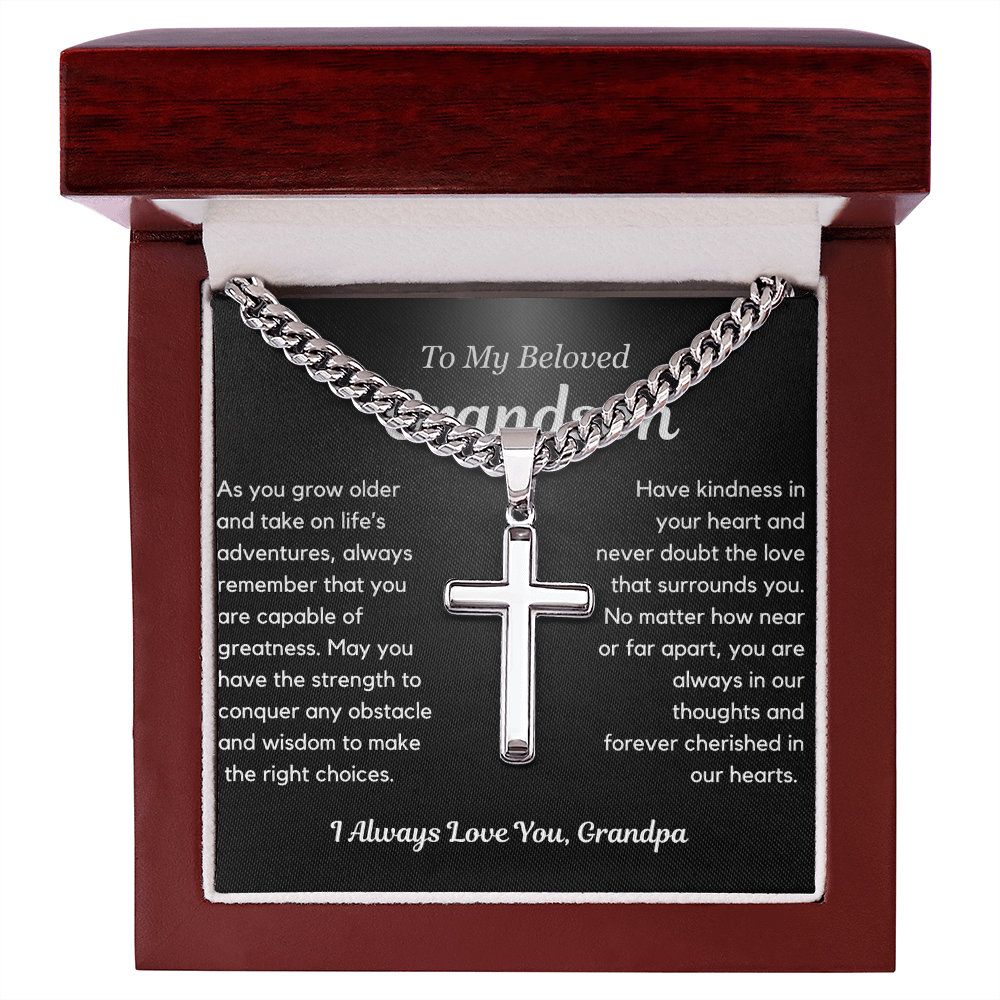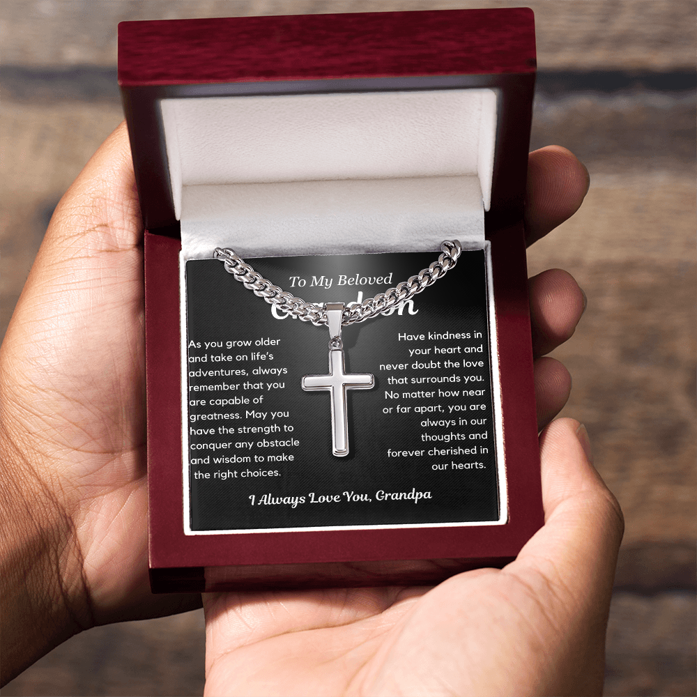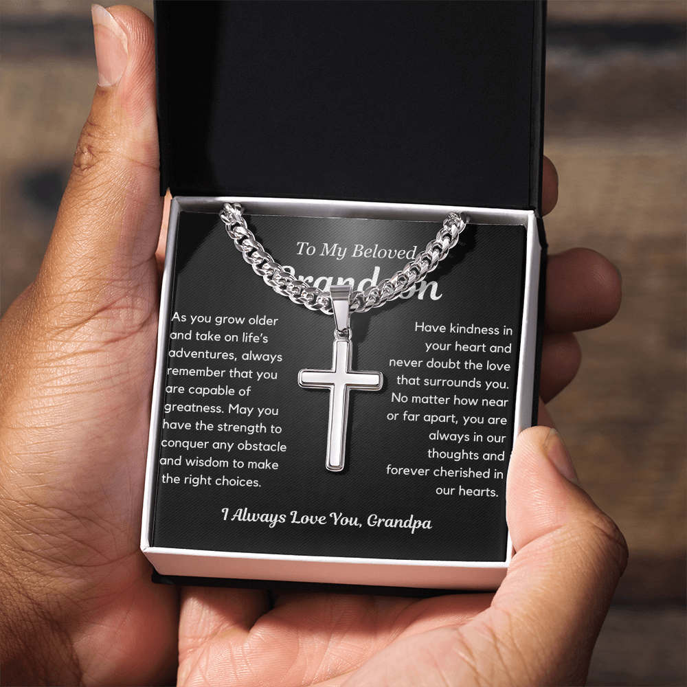 Never doubt the love that surrounds you - Artisan Cross Cuban Chain For Grandson