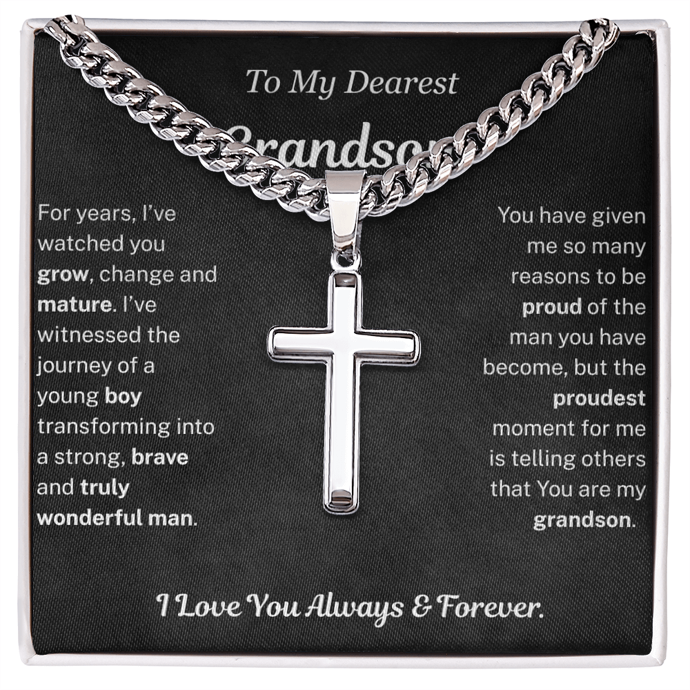 Proudest moment for me is telling others that you are my Grandson - Cuban Artisan Cross Chain For Grandson
