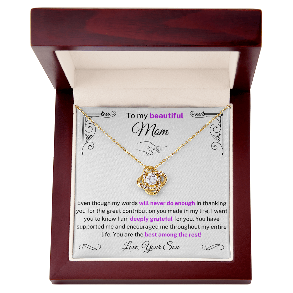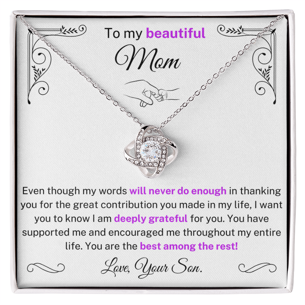 Imagine her reaction receiving this beautiful Love Knot Necklace. Representing an unbreakable bond between two souls, this piece features a beautiful pendant embellished with premium cubic zirconia crystals. Surprise your loved one with this gorgeous gift today!