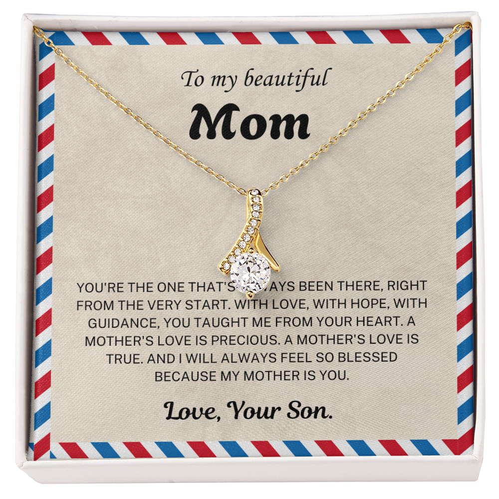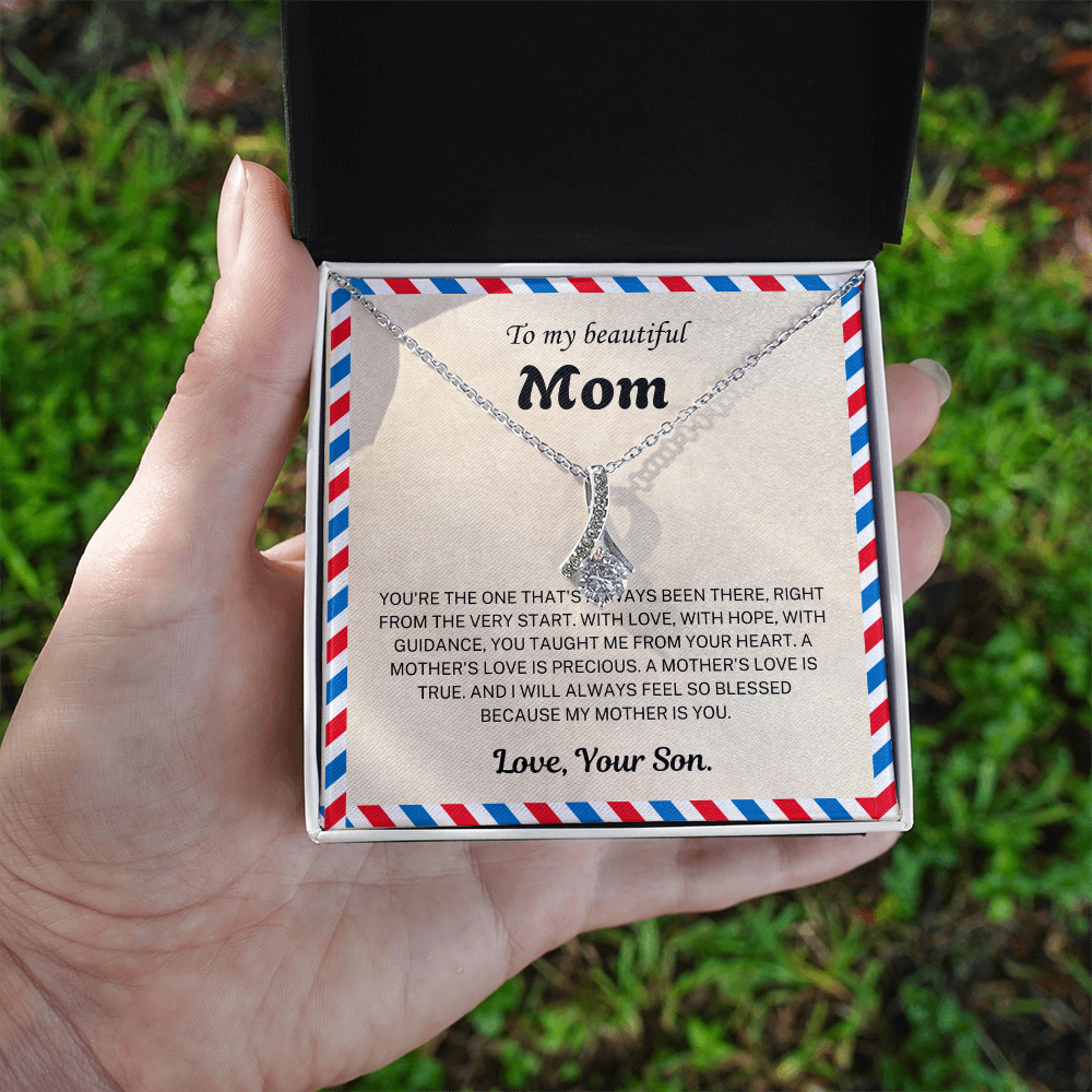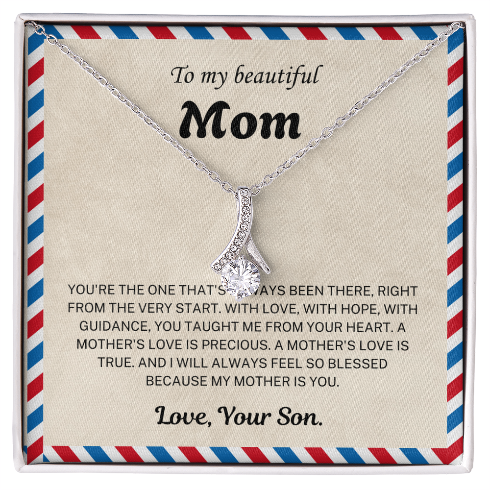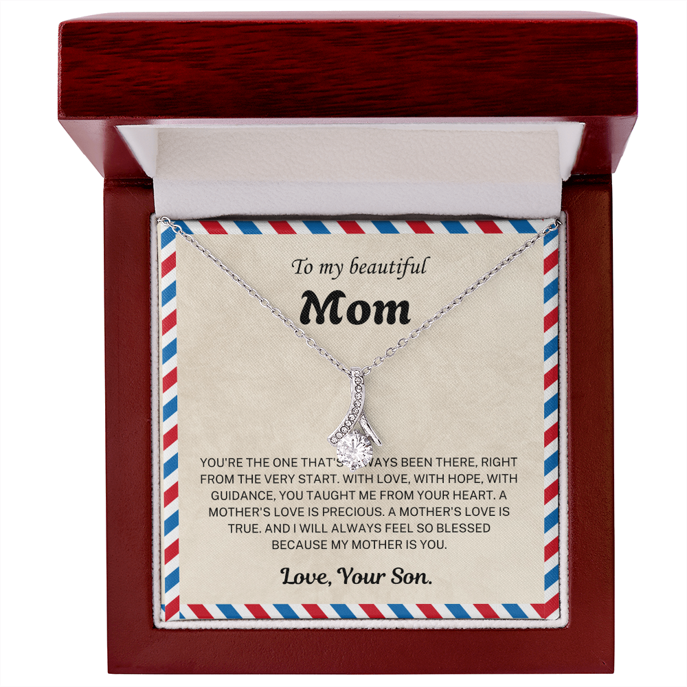 Imagine her reaction when she opens this stunning gift! The Alluring Beauty necklace features a petite ribbon shaped pendant that is sure to dazzle your special someone. Whether it's a birthday or anniversary, make sure to get her a gift she will love for years to come.
